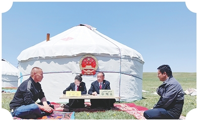 新疆特克斯县人民法院喀拉峻旅游毡房巡回法庭现场化解 纠纷。 张 婷摄 新疆昌吉回族自治州天山天池风景区秋色如画。 何 龙摄 新疆伊宁市人民法院巴彦岱人民法庭"老法官说法"调解室 促成纠纷当事人握手言和。 依力哈木·吐尔汗江摄 9月24日,习近平总书记在听取新疆维吾尔自治区党委和政府工作汇报时强调,"要全力维护新疆社会大 局稳定""坚持抓基层、强基础、固根本"。 近年来,新疆法院立足边疆民族地区实际,发挥人民法庭职能,促进基层社会治理,推动新时代"枫桥 经验"在草场牧区、镇街村社落地生根—— 在阿勒泰地区,福海县人民法院喀拉玛盖人民法庭里,喝一碗醇香的奶茶,听一曲悠扬的冬不拉曲,传 统民俗融入了司法调解,也打开了牧民的心扉。 帕米尔高原上,"中国日落最晚"边境法庭——乌恰县人民法院乌鲁克恰提人民法庭有个"爱国戍边调解 室",作为基层解纷前哨,将法治的温暖传递到祖国边陲。 伊宁市人民法院巴彦岱人民法庭的"老法官说法"调解室里,退休法官韩林凭借丰富阅历和司法经验,在 法与情之间寻找最佳平衡点,经常被群众"点单"…… 今天,新疆各地的人民法庭已逐步从乡村牧区拓展到城乡接合部、中心城区、工业园区、自贸试验区, 案件类型 ...