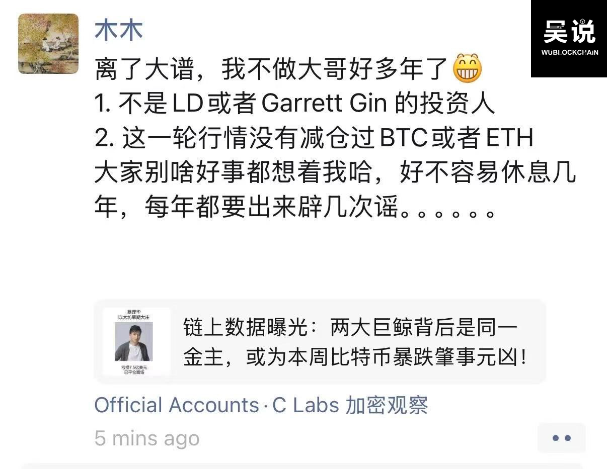 李林:并非 LD 或 Garrett Gin 的投资人,本轮行情中未减仓 BTC 或 ETH