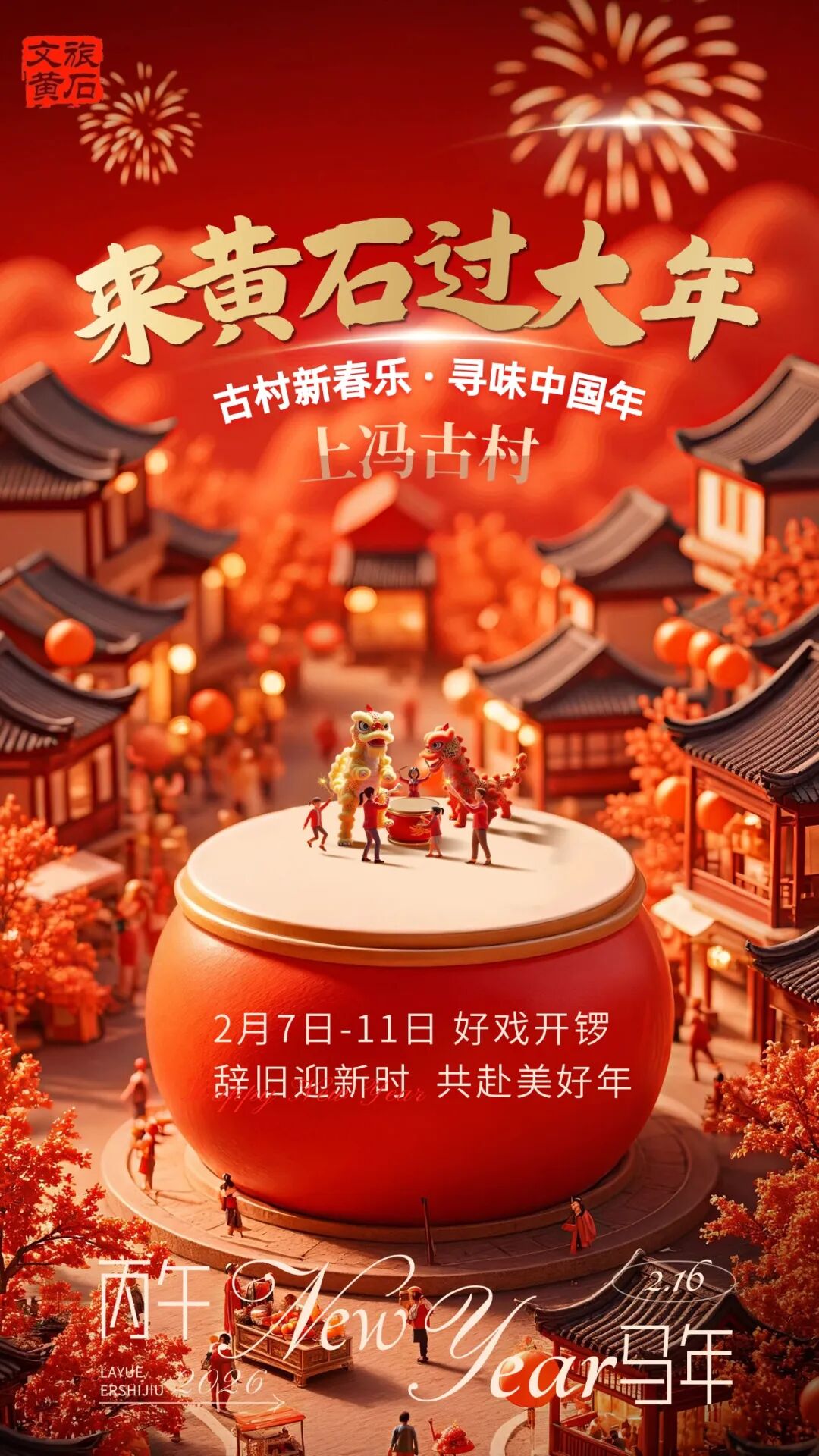 核心观点 - 黄石市及上冯古村围绕2026年春节策划了以“非遗烟火”、“骐骥票游”和“春日线路”为核心的“黄石过大年”系列活动 旨在通过沉浸式文化体验、惠民政策及全域旅游联动 打造一个有情、有味、有记忆的中国年 以促进地方文旅消费和乡村振兴 [1] 活动策划与内容 - 核心活动“上冯过大年”于2月7日至8日及2月11日在上冯村举行 主题为“古村新春乐·寻味中国年” [4] - 活动包含“上冯有戏”行进式场景演艺 通过六大沉浸场景让游客亲历年节喜乐 具体场景包括花轿巡游、水上婚礼、绣球招亲、送别出征等 [13][15] - 2月7日至8日中午在九古说书堂设置“上冯吃大席”活动 以乡野本味烹煮年味盛宴 营造团圆氛围 [16][19] - 2月11日将举办“知音湖北”新春嘉年华2026年全国春节“村晚” 作为“黄石过大年”核心活动 以“乡土年味儿”为核心 采用日夜联动、全域沉浸、深度体验模式 [22] 文化特色与亮点 - 全国“村晚”将融合国家级非遗王贵武龙灯与LED灯带及AR特效 呈现“龙游古村”全景 并借助3D数字投影还原大冶青铜矿冶遗址 彰显地域文化 [25] - 活动涵盖可看、可听、可互动、可感受、可品等多维度体验 包括行进式演出、剪纸服装秀、民俗巡游、本土民歌、传统戏曲、接福礼、赏非遗、品美食等 [25] - 晚会当晚将在百年古祠堂设置“团圆宴” 以地道乡土美食款待游客 [25] - 央视CCTV-2《生财有道》栏目组将于2月7日专程走进上冯古村 拍摄记录“舌尖上的年味”及黄石民俗与美食的碰撞 [21] 举办地背景与资源 - 上冯古村是拥有600余年历史的中国传统村落和国家4A级旅游景区 素有“九古奇村 诗画上冯”美誉 [27] - 古村三面环山 留存明清古民居、古树、古井、古道等丰富“九古”遗存 建筑风格为徽派与鄂东南交融 [29] - 古村在保护中焕新 现有九古说书堂曲艺展演、上冯有戏实景演出、鱼灯巡游等常态化民俗活动 [29]