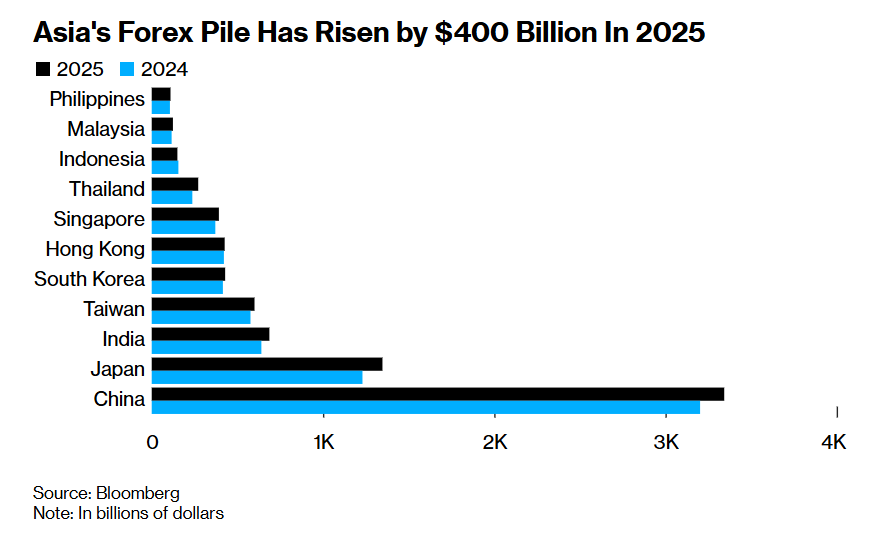 亚洲官方储备逼近8万亿美元! 强美元或遭遇一场弹药充足的货币保卫战