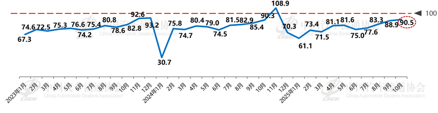 中国汽车流通协会:10月份汽车消费指数为90.5 预计11月车市将延续上升态势