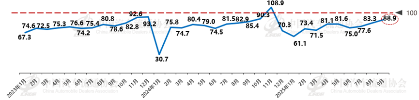 中国汽车流通协会:9月我国汽车消费指数为88.9 预计10月汽车销量继续走高
