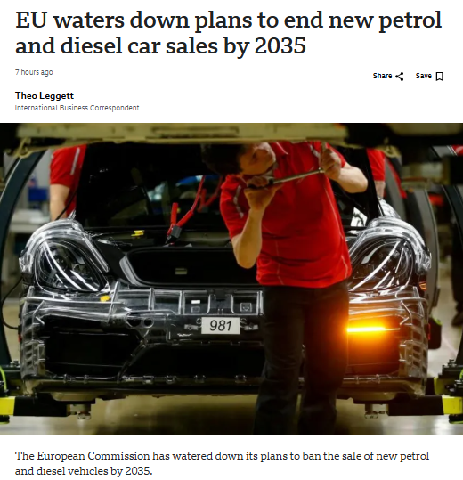 欧盟“撤回”2035全面电动化