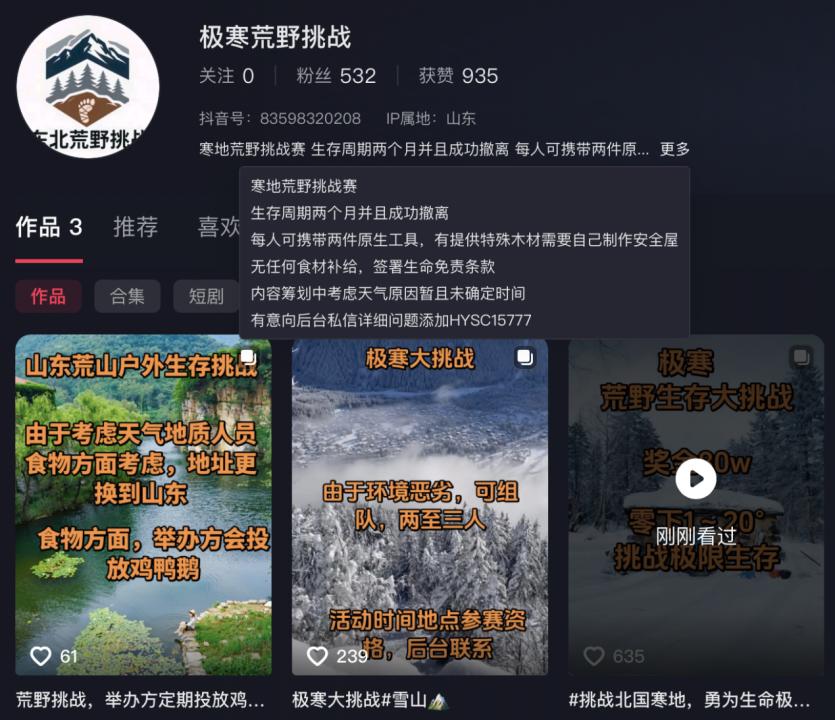 「核心提示」 严肃的极限体育,沦为流量变现工具? 如果把一群普通人放进深山老林,没手机、没熟人,也没有现代装备,他们会变成什么样?在最新爆火的网络赛事"荒 野求生"中,这个曾经只属于探险纪录片的极限挑战突然走进了大众视野。 荒野的终点是直播间 "荒野求生"的故事,在比赛落幕后才真正开始。 林北离开山林后,开启了个人账号的首场直播。不到十分钟,在线观看人数就突破了十万,粉丝们狂刷礼物,涨粉数 据在一夜之间飙升。而林北的经历并非孤例——赛事结束后,无数拥有"野性出圈时刻"的素人选手,纷纷转战直播 间,开启了与流量的第一次亲密接触。 在这股热潮背后,赛事主办方和参赛者都明白,荒野比拼只是造星的起点,直播带货、短视频剪辑、账号涨粉才是回 本的核心。对于众多默默无闻的策划公司和参赛素人,最直接有效的变现路径,就是利用流量转化为收入。 广东一位有多年体育赛事承办经验的人士对《豹变》表示,场地租金、物料成本、人员经费等费用是硬性支出,占了 成本大头,如果想要出圈,就需要投流,但"钱少了没什么效果,预算多了也不能保证一定能火,是个无底洞"。 成本的压力真实可见。七星山荒野求生赛承办方负责人近日在接受《光明日报》采访时表示,比 ...