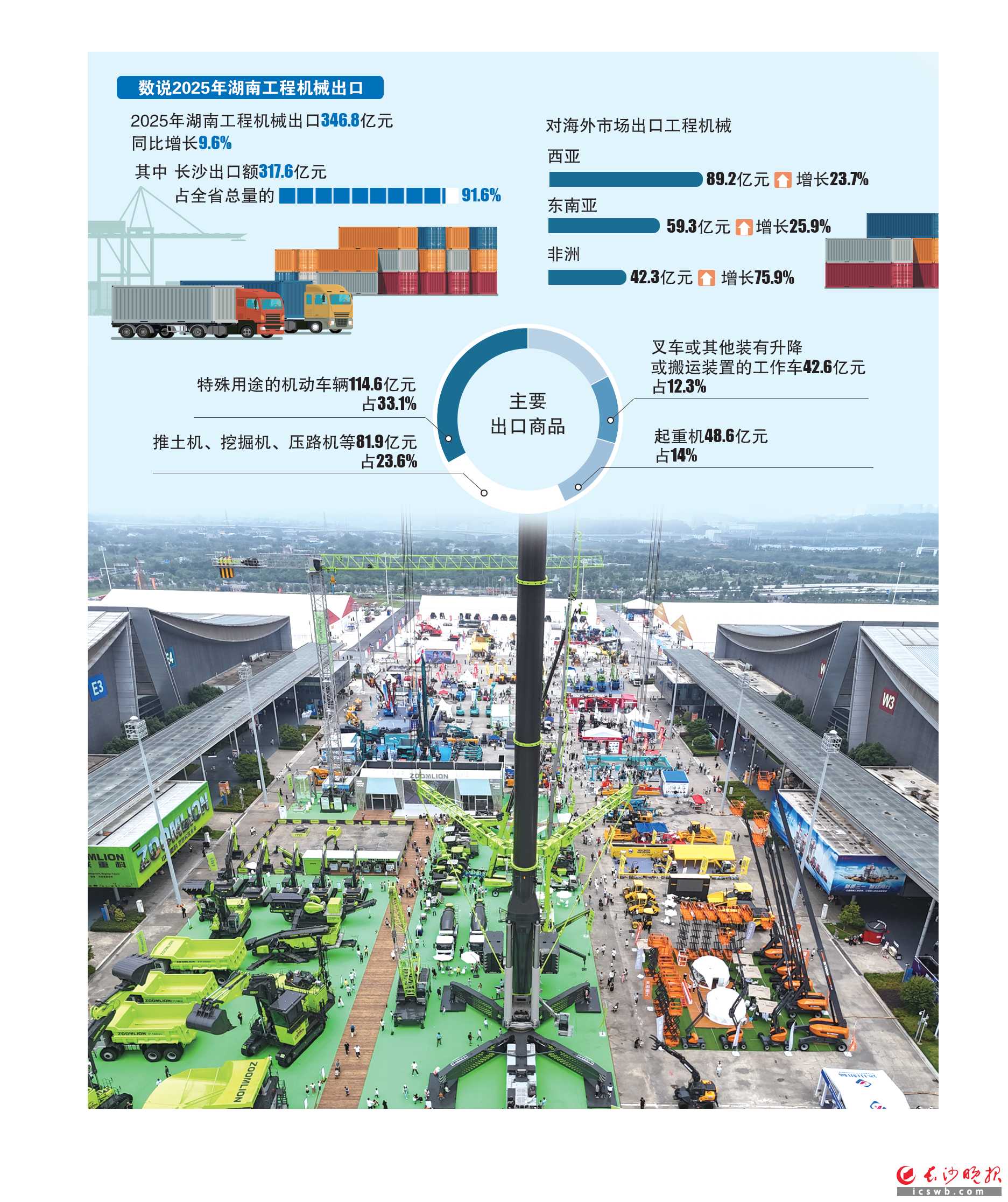 2025年湖南工程机械出口346.8亿元,同比增长9.6%,结构持续优化 长沙工程机械出口占全省九成