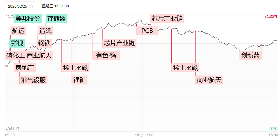 市场整体表现 - 2月25日A股三大指数全线收涨,沪指涨0.72%至4147.23点,深成指涨1.29%至14475.86点,创业板指涨1.41%至3354.82点 [1] - 全市近3800股上涨,连续2天超百股涨停,总成交额2.48万亿元,较上一交易日增加2627.63亿元,增幅11.84% [1][2] - 市场涨跌家数比为3783支上涨,130支平盘,1637支下跌,主力资金净流出109.17亿元 [2] 强势板块与题材 - 受涨价催化影响,磷化工、航运、稀土、油气等涨价题材表现强势,磷化工板块近10股涨停,稀土永磁板块拉升,包钢股份、中色股份等涨停 [2] - 半导体产业链午后走强,和林微纳、有研硅20%涨停 [2] - 房地产及其相关板块如钢铁、建材、水泥等齐涨,城投控股、包钢股份涨停,东方雨虹涨超9%,海螺水泥涨超5% [3] 弱势板块 - 影视传媒板块下跌0.65%,博纳影业与横店影视连续2天跌停,中国电影跌超8%,光线传媒跌超5% [5][6] 政策与市场消息 - 上海发布楼市“沪七条”,符合条件非沪籍居民可在外环内增购1套住房,持《上海市居住证》满5年及以上群体可在本市购买住房 [4] - 机构观点认为,节后资金回流预期增强,市场流动性有望改善,同时重要会议的政策预期有望为市场带来新的政策红利,激发相关板块投资机会 [6] 后市展望与策略 - 节后随着资金回流、政策预期升温,市场活跃度有望进一步提升 [7] - 操作上建议避免盲目追高,逢低布局或仍是占优策略,可重点关注流动性回流情况与政策面动向,择机逢低布局小盘成长与具备明确产业催化的题材方向 [7]
