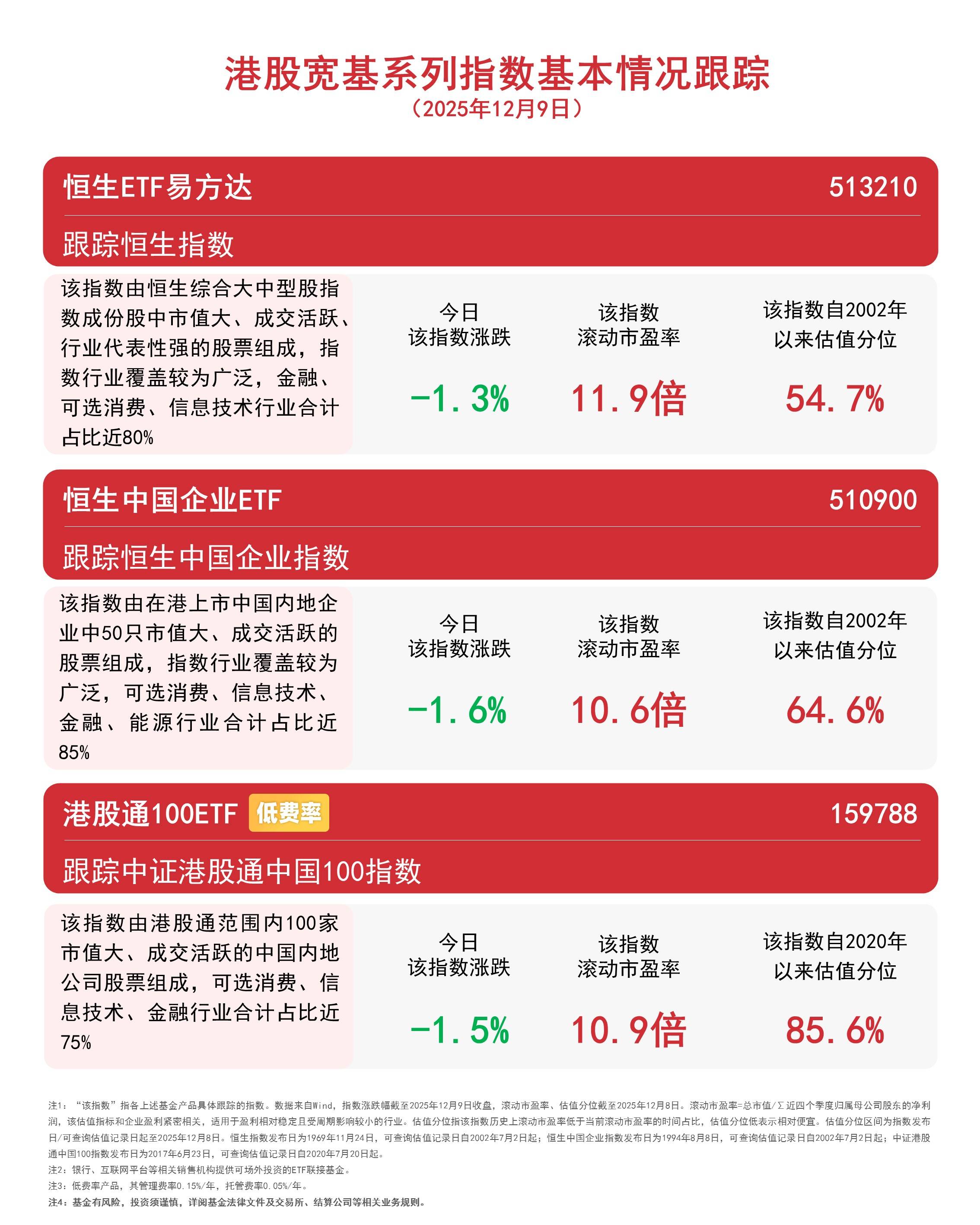 港股宽基指数延续调整,关注恒生中国企业ETF(510900)等产品投资价值