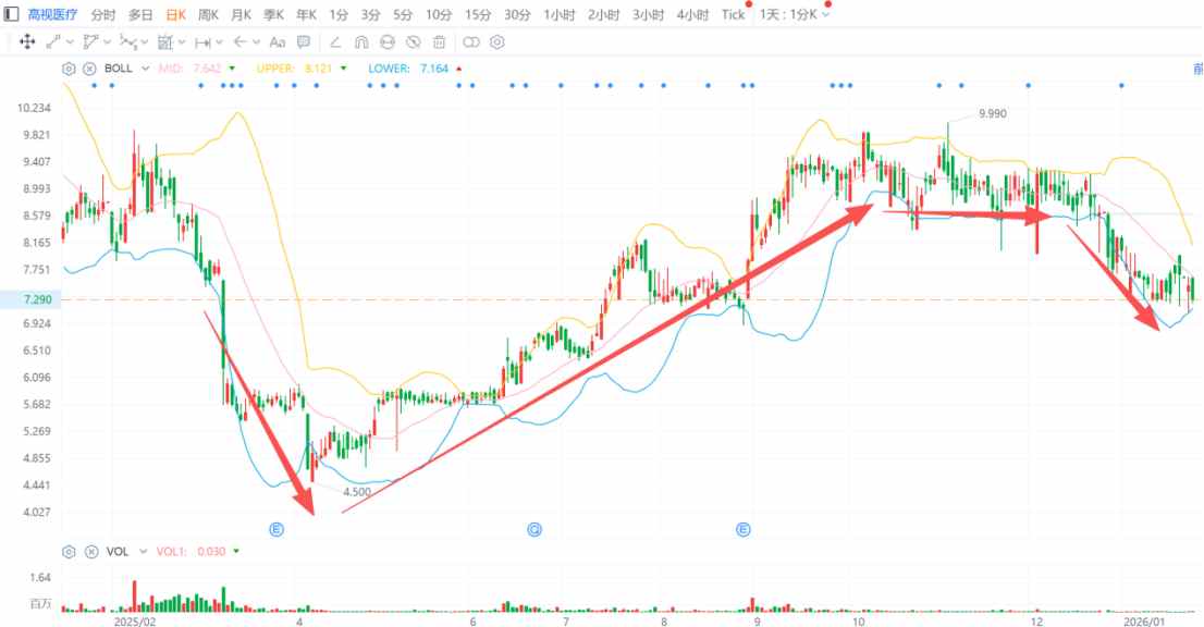 不过,高视医疗的股价并未一路上攻,去年9月中下旬开始,随着港股医药板块的整体回调,高视医疗的股价也开始了一段为期3个月的横盘震荡,直到去年 12月下旬才跌破平台开始走低。 得益于2025年港股医药板块行情大涨以及公司中报亮眼表现,高视医疗(02407)在去年3月被踢出港股通名单后,股价反而实现了月度"四连阳"。去年5月至9 月,公司股价累涨幅度达到65.50%,在当时的"出通股"中表现亮眼。 智通财经APP观察到,从去年12月22日至今,高视医疗股价累计跌幅近20%,基本回吐了去年中报以来的所有涨幅。如今2025年报即将出炉,其能否凭借亮 眼业绩再获市场青睐? 港股通资金开启新一轮出清行情? 去年3月10日,2025第一期港股通标的的名单调整生效。当日,被剔除港股通的股票当日股价平均下跌14.24%,平均成交额上升19%。其中20只股票跌幅超 过10%,高视医疗便是其中之一。通常来说,标的"出通"后往往会迎来场内港股通资金的单向抛压,那高视医疗在去年12月下半月至今的这轮下跌行情,是 否是港股通资金开启的新一轮出清行情呢? 智通财经APP了解到,由于高视医疗在当时"出通"前的检讨周期内日平均市值仅为24.64 ...