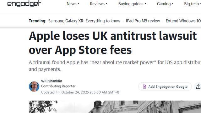 裁决核心内容 - 英国竞争上诉法庭认定苹果公司在2015年至2020年间滥用市场支配地位 [1] - 裁决认定苹果通过App Store向开发者收取过高佣金 [1] - 这一决定可能使苹果面临高达15亿英镑的赔偿 [1] 市场行为认定 - 法庭指出苹果垄断了iOS应用分发和应用内支付市场 [3] - 苹果强制开发者使用其支付系统并支付高达30%的佣金 [3] - 法官驳回了苹果关于安卓平台构成竞争的抗辩理由 [3] - 法官驳回了苹果关于其收费是为保障用户安全的抗辩理由 [3] 裁决影响与后续 - 法庭指出过高费用最终转嫁给了消费者,导致应用和服务的价格上涨 [3] - 苹果公司已明确表示将提起上诉 [3] - 损害赔偿审判定于今年11月进行 [3]