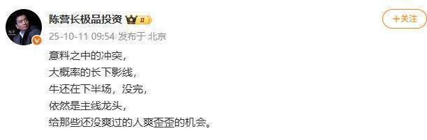 知名网红私募神农投资陈宇:大概率的长下影线,牛还在下半场,没完!依然是主线龙头,给那些还没爽过的人爽歪歪的机会