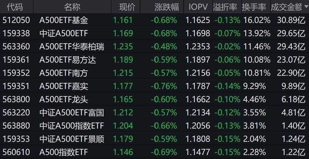市场震荡调整,中证A500指数下跌0.54%,3只中证A500相关ETF成交额超29亿元