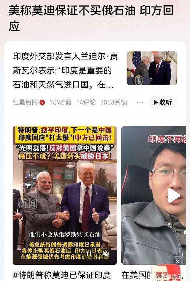 特朗普的言论逐渐引发了越来越多的质疑,尤其是在美国国内的媒体中。许多人开始觉得,特朗普常常 说一些夸张甚至脱离实际的话,已经成了他的一种习惯。如今,美国的报道在提及特朗普时,很多时候 不再引用官方声明,而直接引用他个人的言辞,因为他的一些说法实在让人难以置信,且多次被证明为 不实。他似乎已经成为了谣言的源头。 最近,特朗普声称印度总理莫迪承诺停止购买俄罗斯石油。他讲得轻松自如,好像莫迪就是在听到他的 一番话后,马上就答应了。然而,为了使事情看起来更真实,特朗普自己也承认,这并不意味着印度会 立刻停止从俄罗斯进口石油,而是需要经过一定的"过程",但他表示这个过程会很快结束。 然而,出乎意料的是,仅仅不到一天的时间,印度和俄罗斯都做出了公开回应。俄罗斯方面表现得非常 乐观,表示他们相信自己的贸易伙伴会作出理智的决定,俄罗斯的石油供应稳定,且价格优惠,从商业 角度来看,谁会不愿意继续采购呢?因此,俄罗斯方面并不感到担忧。 印度方面虽然没有直接否认特朗普的说法,但坚持了自己一贯的立场。印度外交部指出,"作为全球重 要的石油和天然气进口国,在能源形势动荡的背景下,保障国内消费者的利益始终是我们优先考虑的任 务。我们的进 ...