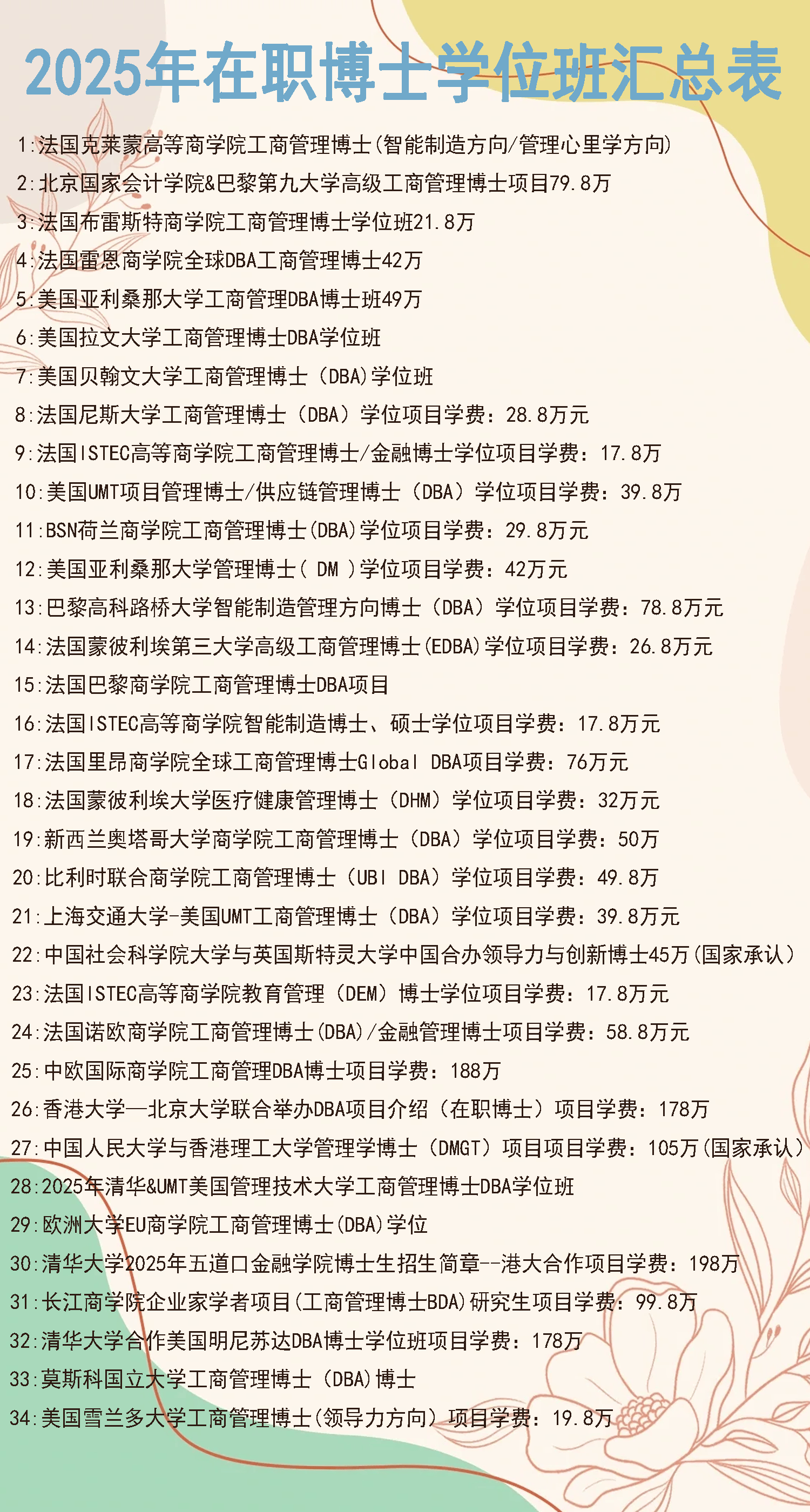 项目定位与目标 - 项目为全球DBA高级工商管理博士学位项目 是一个以研究为基础的博士学位项目 [3] - 项目目标是为企业领导者提供博士学位的培训 使其能够选择与企业或商业世界未来成功息息相关的前沿课题 完成高标准的应用研究工作 [3] - 项目旨在培养工商界高层管理人士和经济界精英 提升其管理、经济、金融等理论水平 提高在实际工作中解决决策性重大疑难问题的能力 [3] 核心价值与能力培养 - 使学员具备行业相关的系统知识和研究能力 以在全球一体化及复杂商业环境中取得可持续的商业成功 [1] - 加强商业知识、创新或创造 并为商界研究做出贡献 [1] - 结合商业经验和研究 强化企业领导力 [1] - 项目在不影响学员工作的情况下 为其提供获得商业和管理领域高水平研究生资格的机会 [3] 课程内容与学术支持 - 每个具体的研讨主题由雷恩商学院及其专门研究该课题的附属研究机构提供 [1] - 研究机构在课题上带来最相关、最有影响力和最新颖的观点 并与学员分享研究报告 [1] - 专业研究课题使学员在其选择的领域中 对中国具体的商业或管理问题有更深刻的理解 [1] 学院研究实力与专长领域 - 雷恩商学院及其师资的卓越研究是DBA课程学术质量的保证 [1] - 雷恩商学院专注于有影响力的跨学科研究 [1] - 学院在人工智能驱动型企业、现代服务业、绿色、数字和需求驱动供应链管理等领域建立了独特卓越的专业知识 [1] - 学院已成为欧洲乃至全球的一个重要研究高地 [1]