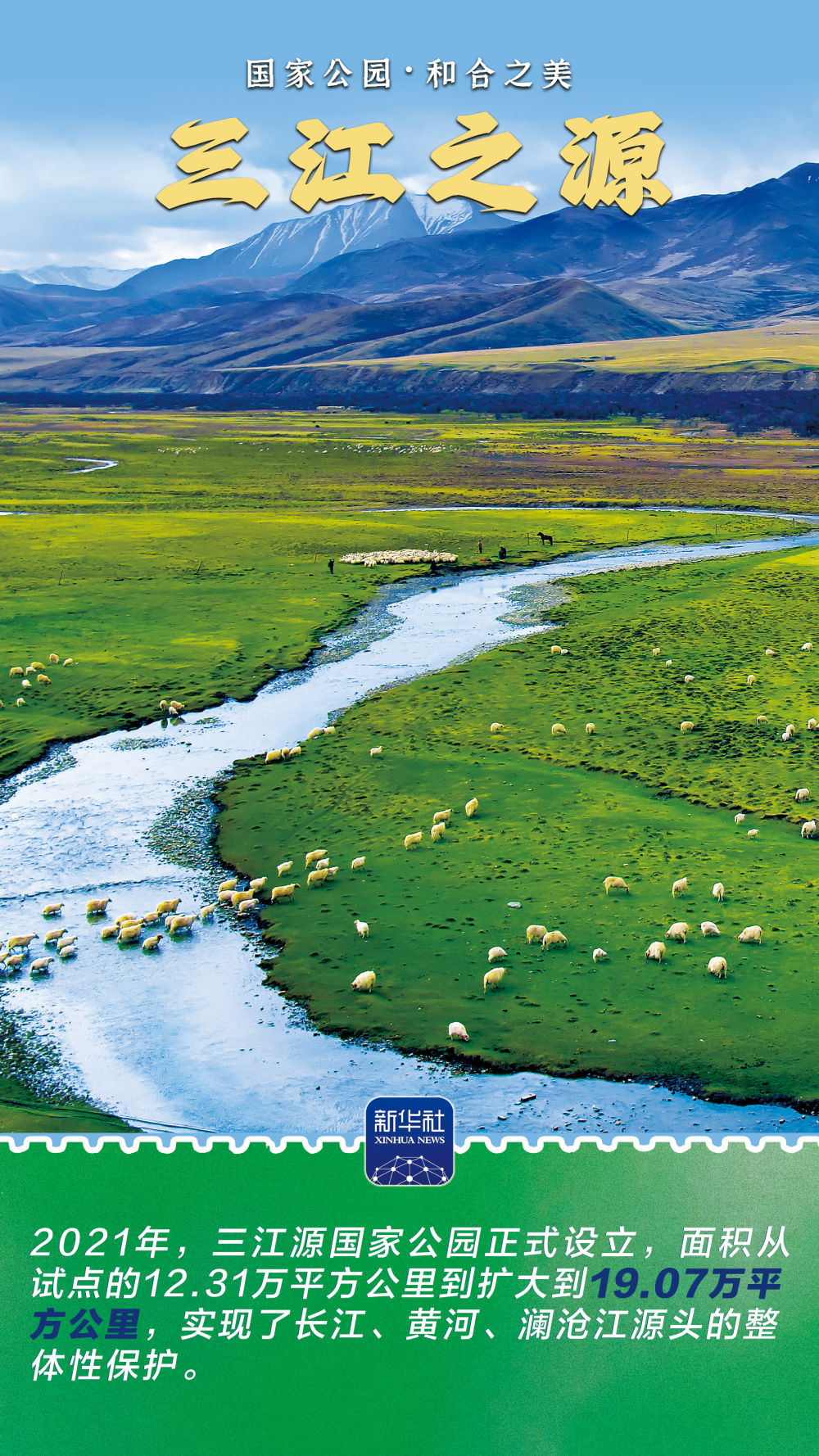 2021年,三江源国家公园正式设立,面积从 试点的12.31万平方公里到扩大到19.07万平 公里,实现了长江、黄河、澜沧江源头的整 体性保护。 国家公园 · 和合之美 43 933 1 (2 NHUA NEWS 三江源,源起冰川,因水得名,是亚洲乃至 世界上孕育大江大河最集中的地区之 11.7 年为中国18个省份和周边5个国家提供30 【 2 。 优质淡水,被誉为"中华水塔" 位于青藏高原腹地的三江源国家公园,是长江、黄河和澜沧江的发源地。这里是"高原精灵"藏羚羊的家园,也是高原珍贵生物的基因宝库;这里有 冰川林立的奇观,也有千湖映雪的美景。 今年是我国启动国家公园体制改革10周年。三江源国家公园2021年建园以来,人与自然和谐共生的美好图景徐徐展开。让我们跟随这组海报,一起 感受"中华水塔"的山清水秀、稳固丰盈。 在国家公园体制机制护航下,三江源地区生态环 境持续改善, 藏羚羊、藏原羚、藏野驴等野生动 物数量大幅增长,藏羚羊数量已从不足2万只恢 复到 与关系。 新华社 国 家公园 · 和 合 之 美 新华社 江源区域约36万平方公里的范围内, 国家公园 · 和合之美 2 2 = 3 三江源国家公园园区包含 ...