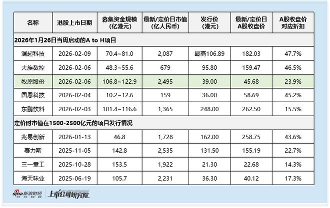 牧原股份港股IPO发行概况 - 公司于1月29日启动全球发售,2月6日在港交所挂牌交易,发行价为39港元/股 [1] - 基础发行股数为2.74亿股,绿鞋后发行股数为3.15亿股,对应发行规模约为106.8亿港元至122.9亿港元 [1] - 港股发行价较A股2月3日收盘价45.68元/股,折价约23.9% [1] 发行定价与市场对比 - 在2026年1月26日当周同步启动的5单A to H项目中,公司23.9%的发行折扣显著低于国恩科技、大族数控、澜起科技(折扣均突破45%)等项目 [2] - 与同为消费领域龙头的东鹏饮料(折扣15.5%)相比,公司折扣更大,提供了更具吸引力的入场性价比 [2] - 在2025年至今定价时市值1500-2500亿元的A to H项目中,公司23.9%的折扣高于海天味业、三一重工(折扣均低于20%),与赛力斯(折扣22.7%)相近 [2] 基石投资者阵容 - 本次IPO共吸引13家(合并主体)基石投资者,合计投资6.85亿美元,占发行规模的50% [4] - 产业资本方面,泰国正大食品投资2亿美元,新加坡丰益相关主体投资7000万美元,中国中化投资6500万美元 [4] - 外资长线及多策略基金方面,富达国际投资8000万美元,加皇环球资管投资3000万美元,瑞银资管投资2000万美元,千禧基金、简街基金各投资1000万美元 [4] - 其他重要投资者包括河南农投(5000万美元)、高毅(6000万美元)、平安人寿(3000万美元)、大家人寿(3000万美元)及美的发展控股(3000万美元) [4] 公司行业地位与经营基本面 - 在国内生猪市场格局中,公司的龙头地位堪称“独一档”,在产能规模、养殖技术、成本控制与产业链整合能力上均远超同业 [1] - 2022年至2025年前三季度,公司营业收入分别为1248亿元、1109亿元、1379亿元及1118亿元,规模体量稳居行业前列 [5] - 同期归母净利润分别为133亿元、-43亿元、179亿元及148亿元,在行业周期波动中展现出较强的盈利修复能力与抗风险韧性 [6] 近期业绩表现与行业周期影响 - 2025年全年商品猪销售均价同比下降17.3%至13.5元/公斤,对公司盈利造成显著冲击 [6] - 公司预计2025年全年归母净利润落在147亿元至157亿元区间,同比下滑12.20%至17.79% [6] - 2025年下半年归母净利润水平出现大幅回落,成为全年盈利下滑的核心拖累 [6] - 2026年1月全国生猪出栏均价为12.67元/公斤,低于2025年全年水平,行业预计盈利回升可能要到2026年下半年 [7] 股东回报政策 - 除2023年因亏损未分红外,公司上市以来平均股利支付率达28% [9] - 2024年度股利支付率提升至42%,现金分红75.9亿元,股息率达3.6% [9][10] - 2025年半年度股利支付率高达48%,现金分红50.0亿元,股息率为2.2% [9][10] - 若2025年全年维持48%的股利支付水平,预计全年股息率可达2.6% [9][10]