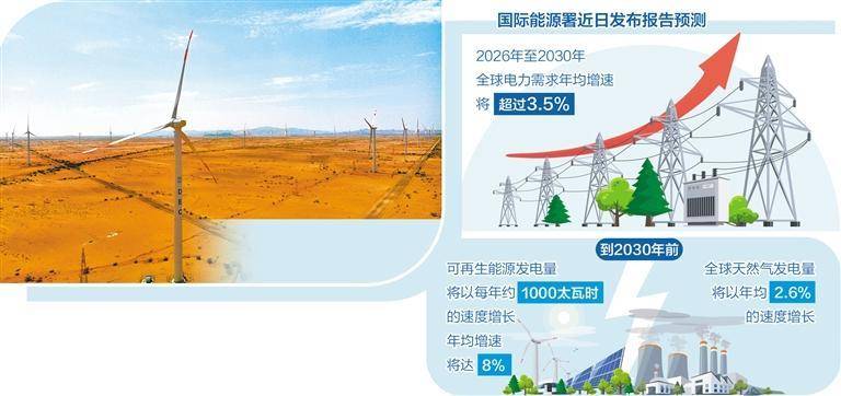 全球电力需求增长趋势 - 2026年至2030年,全球电力需求年均增速将超过3.5%,主要驱动力来自工业、电动汽车、空调及数据中心用电量的增长 [2] - 2025年全球电力需求同比增长3%,未来5年全球年均电力需求增速将较过去10年平均增长率高出约50% [2] - 到2030年,全球电力消费增速预计达到总能源需求增速的2.5倍 [2] - 新兴经济体将持续成为全球电力需求增长的主要支撑,到2030年将贡献全球近80%的新增电力需求 [2] - 中国仍将是全球电力需求增长的主要引擎,预计增量占比近50%,未来5年中国新增电力年均增长率将达到4.9% [2] - 到2030年,印度和东南亚国家在新兴经济体电力需求增长中的占比将大幅提升 [2] - 发达经济体的电力需求增长正重新步入加速轨道,2025年其占全球电力需求增长的比重从2024年的17%上升至近20%,未来5年该比重将维持在约20%的平均水平 [3] 全球电力结构演变 - 到2030年,可再生能源与核能在全球电力结构中的占比将提升至50% [2] - 到2030年,全球将有约一半的电力来自可再生能源和核能 [3] - 可再生能源的总发电量正在超越煤炭,2025年可再生能源发电量几乎与燃煤发电持平 [3] - 到2030年前,可再生能源发电量将以每年约1000太瓦时的速度增长,年均增速将达到8%,其中仅太阳能光伏发电的年均增量就将超过600太瓦时 [3] - 2025年全球核能发电量创下历史新高,预计未来5年全球核能发电量将保持稳步增长 [3] - 太阳能光伏与风电的全球发电占比将从当前的17%提升至2030年的27% [4] - 尽管燃煤发电在全球范围内正逐渐退居次要位置,但2030年前,燃煤发电仍将是全球第一大电源 [4] - 2025年燃煤发电量基本持平,但各地区呈现分化趋势,中国和印度煤炭使用量下降,而美国电力行业的煤炭使用量增加 [4] - 到2030年,全球天然气发电量将以年均2.6%的速度增长,明显高于过去5年约1.4%的年均增速 [4] 电力系统投资与灵活性挑战 - 若要满足2030年的电力需求,全球电网年投资额需在目前4000亿美元的基础上至少增加50%,且需同步大幅扩展电网相关的供应链 [5] - 由于电网投资长期滞后于发电容量投资,许多电力系统已面临日益严重的拥堵限电问题 [5] - 为满足电网在非高峰时段存在的大量闲置容量,需增强电力系统的灵活性,更新监管框架并及时部署技术解决方案 [5] - 随着电池成本持续下降和技术日趋成熟,日益增长的大型电池储能系统在保障供电安全方面正发挥着越来越重要的作用 [5] 碳排放与电价趋势 - 得益于可再生能源与核能在发电结构中的占比持续提升,2025年全球电力行业碳排放量保持平稳,预计2026年至2030年将进入平台期 [5] - 电力生产每年产生约139亿吨二氧化碳,与10年前相比,全球电力碳强度下降了14%,预计降速在2030年前将进一步加快 [5] - 全球各区域间的电价差距持续存在,2025年受天然气价格走高影响,欧盟和美国等多个国家和地区的平均电价同比上涨,但澳大利亚、印度等国的电价出现下降 [6] 电力安全与系统韧性 - 近期全球范围内发生了多起大规模停电事故,凸显了电力安全对现代社会与经济的重要性 [6] - 电力系统正面临基础设施老化、极端天气事件频发、网络威胁及其他风险 [6] - 加强关键基础设施防护、部署监测与早期预警系统等,将成为防范威胁的重要举措 [6] - 为满足电力系统不断变化的需求,还需建立现代化的运营框架,包括更新电网规范、完善备用容量要求以及构建适应性更强的监管架构等 [6]