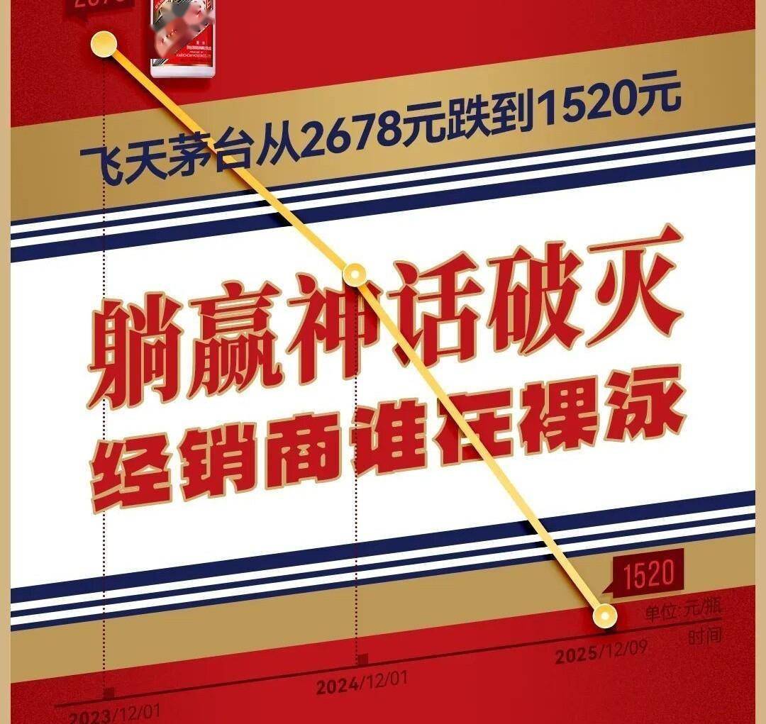 核心观点 - 飞天茅台批发价格经历史无前例的暴跌,逼近官方指导价,其金融属性褪色,市场正经历价值回归 [1][3][5] 价格走势与市场现状 - 53度飞天茅台散瓶批发价已跌至1520元/瓶,逼近1499元的官方指导价 [1] - 批发价在短短两年间狂泻43%,从2023年12月高点2678元一路滑落,创下近十年新低 [1] - 电商平台零售价在1600–1850元区间,与批发价仅差几十元,套利空间几近消失 [5] - 部分经销商综合成本线(含仓储、资金利息、物流)逼近1500元,几乎无利可图,甚至面临亏损清仓 [3] 价格下跌驱动因素 - 消费降级、反腐深化、投资退潮三重压力叠加,导致高端白酒金融属性迅速褪色 [3] - 宴席减少、礼品需求萎缩、企业采购收紧,茅台从“硬通货”沦为“难出手的库存” [3] - 年轻一代消费者倾向理性消费,宁可购买精品小众酒,也不愿为品牌溢价买单 [5] - 厂家2025年销售任务已完成导致的自然“停货”,被市场误读为“控价保盘”,加剧了市场恐慌 [3] 行业与市场影响 - 曾经靠倒手茅台轻松年入千万的经销商“躺赢神话彻底破灭” [1] - 茅台价格在过去十年脱离真实消费需求,被过度金融化、证券化,此轮下跌是“温水煮青蛙式”的价值回归 [5] - 幻想“茅台只涨不跌”的囤货客,或将面临更大账面亏损 [5] - 茅台在直播间打折促销都难掩滞销窘境 [5] 未来展望 - “闭眼赚快钱”的时代一去不返 [5] - 茅台品牌底蕴犹存,长期仍具收藏与宴请价值 [5] - 未来需要真正贴近消费、优化渠道、控制投放节奏,才能重建市场信心 [5] - 否则,今日1520元的批发价或许还不是底 [5]