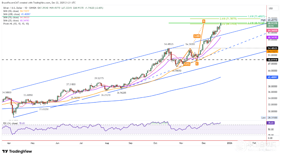 白银价格预测:创下69.46美元新纪录,阻力区面临考验