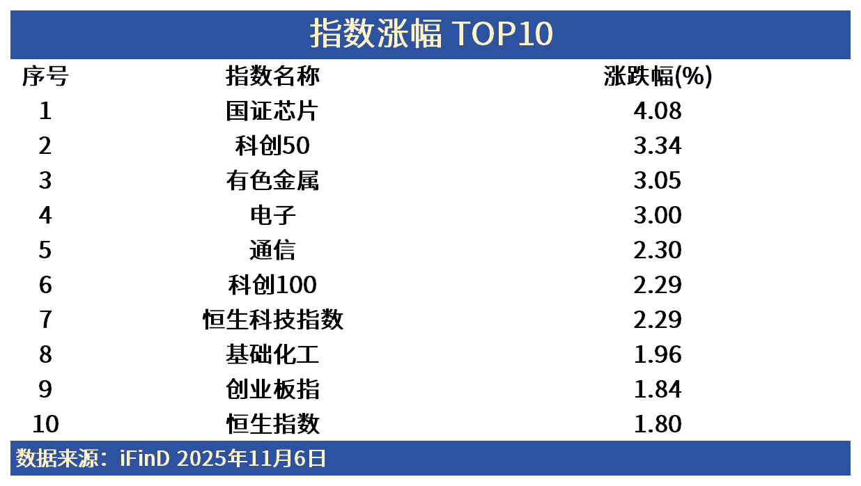 有数据显示,截至2025年11月6日A股收盘,国证芯片、科创50、电子涨幅居前,涨幅分别为4.08%、3.34%、3.00%。 国证芯片、科创50、电子 11月5日,SK海力士表示,已与英伟达就明年HBM4的供应完成了价格和数量谈判。据报道,HBM4的供应价格将比HBM3E高出50%以上。SK海力士向英伟 达供应的HBM4单价已确认约为560美元(约合80万韩元)。此前业内预期SK海力士的HBM4单价约为500美元,但实际交付价格超出预期10%以上,比目前 供应的HBM3E(约合370美元)价格高出50%以上。 三星电子预计2026年人工智能和传统服务器需求将实现增长。第四季度移动芯片供应短缺将加剧。与人工智能相关的服务器需求持续增长,第四季度已超过 行业供应水平。明年需求将超过供应。预计2026年人工智能应用需求将持续强劲。显示业务2026年的前景展望较为保守。芯片价格将在第四季度延续涨势。 中信证券认为,三大存储原厂暂停DDR5报价,DDR5现货价格飙升25%,季度涨幅或达30%—50%,存储芯片涨价叠加长鑫存储大幅扩产以及HBM3产品的 交付有望进一步带动上游材料端需求持续增长,同时,在外部限制或将加码 ...