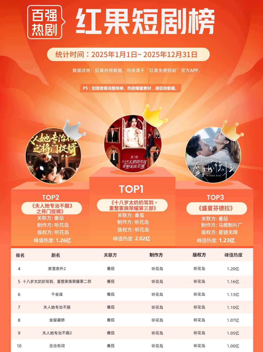 公司表现与产品数据 - 听花岛出品的短剧《家里家外2》自12月4日上线以来,热度持续断层领先,多项数据创下行业新纪录 [1] - 该剧在红果短剧平台连续5日热度值破亿,上线仅4天观看量已突破10亿大关 [4] - 据云合数据,该剧仅用3天时间播放量即突破10亿,成为监测范围内最快破10亿的短剧作品,是2025年短剧市场的现象级作品 [4] 产品内容与市场反响 - 《家里家外2》由王道铁、孙艺燃领衔主演,延续第一季家庭情感叙事主线,以川渝地域为背景,聚焦重组家庭的烟火日常与成长羁绊 [4] - 该剧凭借细腻的情感刻画、鲜活的角色群像和浓郁的时代烟火气,收获了诸多观众的共鸣 [4]
