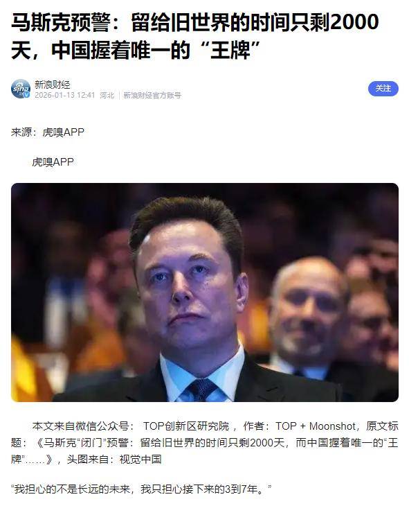马斯克预警:留给旧世界的时间只剩2000天,中国握着唯一“王牌”