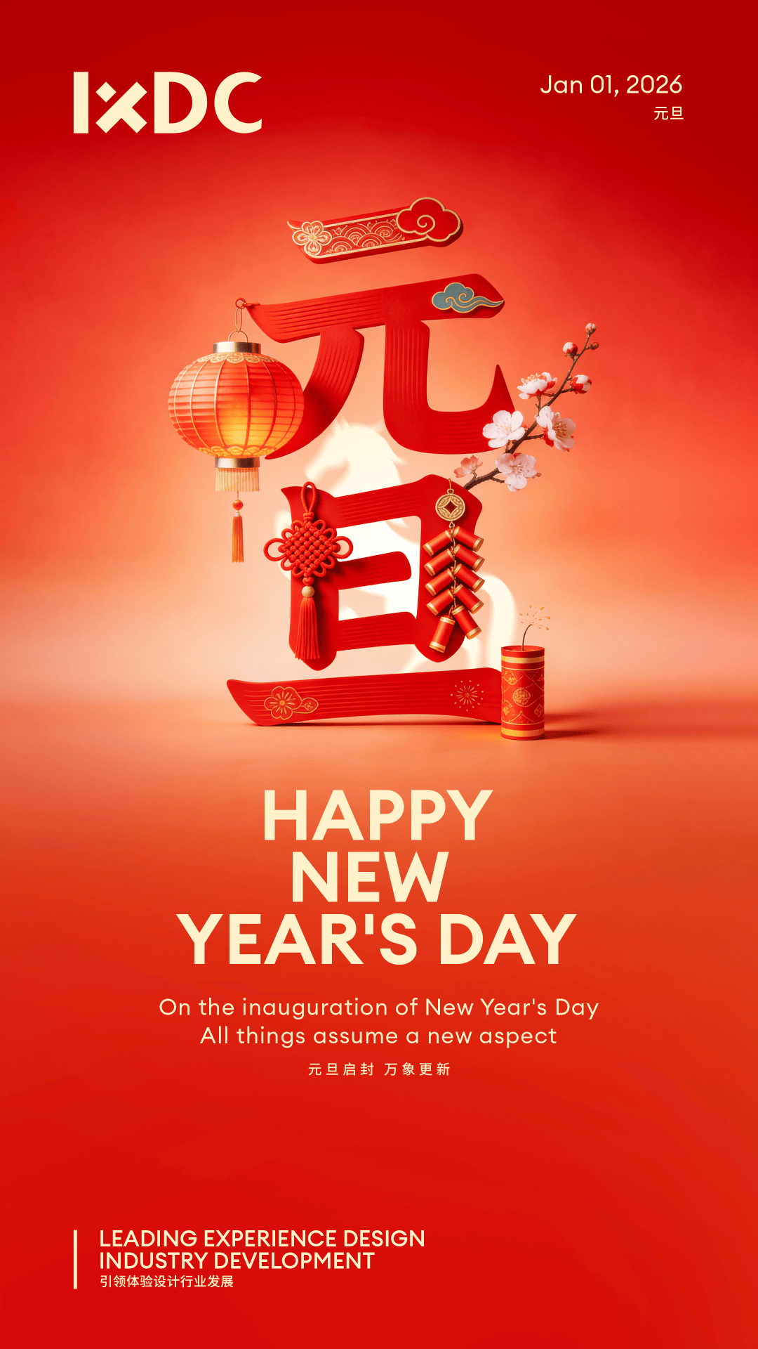 l×DC Jan 01, 2026 元旦 DAY YE/ On the inauguration of New Year's Day All things assume a new aspect 元 旦 启 封 万 象 更 新 亲爱的全球体验设计同仁、合作伙伴与朋友们: 大家好!时光奔涌,岁序更新。值此2026年元旦来临之际,我谨代表国际体验设计大会(IXDC),向所有关注并投身于体验创新事业的同行者、思考者 与践行者,致以最诚挚的问候与新年的祝福! 回望2025,我们共同走过的"人机共生"之旅仍历历在目。感谢每一位参与者的真知灼见与热情投入,让这一年的IXDC大会成为一次充满启发性、连接性 与前瞻性的盛会。我们欣慰地看到,来自全球——包括美国、英国、德国、澳大利亚、比利时、新加坡、乌兹别克斯坦等多国的设计师、技术专家、产品 战略家与管理决策者汇聚于此,围绕"人机共生"这一时代命题展开深度对话。许多参会者眼中闪烁着激动的光芒,他们反馈说: "大会主题直击人 心"、"嘉宾分享极具水准"、"收获远超预期"。这份认可,既是对IXDC专业品质的认可,更是体 验设计行业持续进化、充满活力的生动写照。 新的一年,让我们继 ...