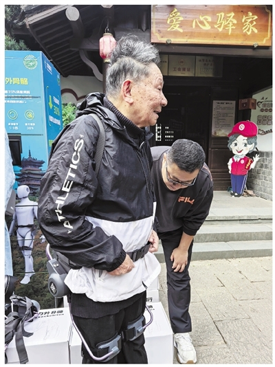 老年人现场体验外骨骼机器人 "目前投用的这批外骨骼机器人重约2.5公斤,可以为登山者节省30%左右的体力。"杭州太希智能科 技有限公司创始人梁林超表示,经过前期多轮测试,该款外骨骼机器人续航可支持登山者从半山国家森 林公园主入口至望宸阁进行往返。 刘鹏透露,在重阳节活动期间(10月27日至31日),大家可免费进行外骨骼机器人体验,整个11 月,市民可以乐享每小时1元的优惠体验价,后续常态化运行后,价格预计会在每小时9.9元左右,让大 家都能享受得起科技赋能的新奇体验。 入秋后的杭城,登高赏秋是件十分惬意的事情,但对于登山新手或者老年人群来说,体力是道难以 逾越的坎。最近,半山国家森林公园引入了一批外骨骼机器人,并且将常态化提供共享租赁服务。"不 累,真不累!"10月27日上午,70岁的市民张先生穿戴上外骨骼机器人,在半山国家森林公园健步如 飞,这次新奇的体验令他印象深刻。 杭州太希智能科技有限公司运营总监刘鹏表示,租赁外骨骼机器人非常方便,"目前我们在半山国 家森林公园的主入口安放了租赁柜,市民游客只需要通过手机扫码开柜,就能取出外骨骼机器人进行使 用,和大家平时扫辆共享单车没什么区别,柜体上有穿戴流程说明, ...