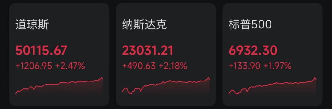 美股市场表现 - 美股三大指数全线收涨,道琼斯工业平均指数首次突破50000点大关,收盘上涨1206.95点,涨幅2.47%,报50115.67点;纳斯达克综合指数上涨490.63点,涨幅2.18%,报23031.21点;标普500指数上涨133.90点,涨幅1.97%,报6932.30点 [1][3] - 大型科技股多数上涨,特斯拉涨幅超过3%,微软上涨近2%,奈飞上涨超1%,苹果上涨近1%;亚马逊下跌超5%,谷歌下跌超2%,Meta下跌逾1% [5] - 芯片股表现强劲,ARM和超微电脑涨幅超过11%,西部数据和AMD上涨逾8%,英伟达上涨近8%,博通上涨超7%,希捷科技和台积电上涨逾5% [5] - 热门中概股普遍上涨,纳斯达克中国金龙指数收涨3.71%,蔚来上涨超7%,理想汽车上涨超6%,百度上涨超5%,小鹏汽车上涨近5%,哔哩哔哩上涨超4%,阿里巴巴和拼多多上涨超3% [1][6] 行业板块动态 - 加密货币与光通信板块涨幅居前,Strategy上涨超26%,MARA Holdings上涨逾22%,比特数字上涨超19%,嘉楠科技、第九城市、Coinbase、Circle、亿邦国际均录得两位数涨幅;Lumen Technologies上涨近30%,Astera Labs上涨近19%,Credo Technology上涨超13% [5] - 医药股普遍上涨,诺和诺德上涨近10%,礼来上涨超3%,此前美国食品药品监督管理局宣布将采取措施限制用于非FDA批准的配制药物中的GLP-1活性药物成分 [5] - 量子计算、无人机、核电及稀土概念股表现活跃,Quantum Computing和D-Wave Quantum上涨超20%,昆腾和Rigetti Computing上涨逾18%;Draganfly上涨超15%,Ondas上涨逾14%;NuScale上涨超18%,Sam Altman持股的Oklo上涨逾14%;MP Materials和Energy Fuels上涨超8% [6] - 贵金属市场强势反弹,伦敦现货白银价格上涨近10%,伦敦现货黄金价格上涨近4%;COMEX黄金期货价格上涨超2%,COMEX白银期货价格上涨逾1% [1][12] - 贵金属板块股票随之上涨,全球最大白银ETF--iShares Silver Trust上涨超5%,科尔黛伦矿业上涨超12%,泛美白银和美国黄金上涨超5% [12] 公司及高管观点 - 英伟达股价大涨近8%,公司首席执行官黄仁勋强调,当前在人工智能领域的巨额资本支出是“合理且可持续”的 [1][8] - 黄仁勋认为,人类正处于“有史以来规模最大的基础设施建设”时期,人工智能将改变“计算一切”的方式,相关基础设施建设将持续七到八年,全球对人工智能的需求极高 [10] - 黄仁勋表示,只要人们愿意为人工智能付费,且人工智能公司能够实现盈利,它们就会持续地“加倍、再加倍、再加倍、再加倍”地进行投入 [1][10] 市场分析观点 - 星展银行高级投资策略师邓志坚分析,当前贵金属市场上短期获利了结者与长期配置者并存,专业投资者即使部分止盈通常也不会清仓,而金价回落至合理位置时中长期买家便会进场 [13] - 邓志坚指出,自去年四季度以来,全球央行增持以及专业投资者通过ETF等方式的对冲需求持续存在,这基于中长期避险逻辑,包括地缘政治风险、美债风险、对美股及美国政府财政可持续性的担忧,这些因素未变,因此金价下跌后仍会有买盘介入 [13]