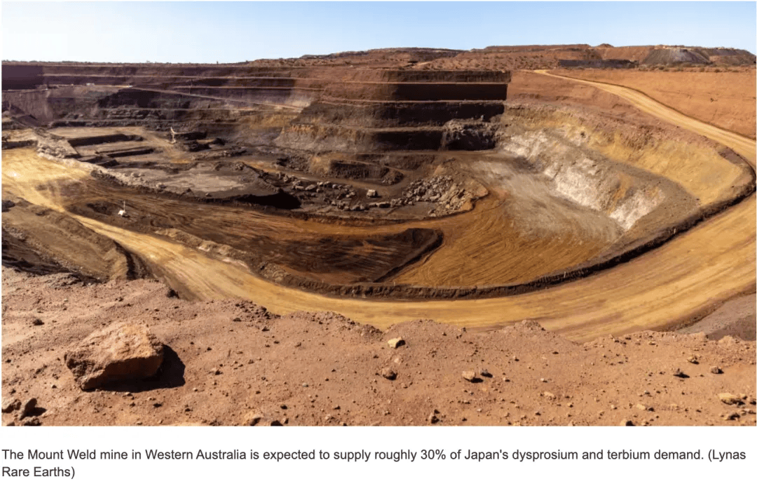 据《日经亚洲》31日报道,日本综合商社双日公司近日开始从澳大利亚进口部分稀土元素,这标志着日本首次从中国以外的渠道获取这一关键资源。 双日公司周四表示,已开始进口从澳大利亚芒特韦尔德矿山开采的镝和铽。这些原料经马来西亚加工后运往日本。 据报道,芒特韦尔德矿的运营方——澳大利亚莱纳斯稀土公司在2023年获得由双日和日本金属与能源安全机构(JOGMEC)共同成立的合资企业投资2亿 澳元(约合人民币9.3亿元)。莱纳斯将向日本供应该矿山最多65%的镝和铽产量,相当于日本市场需求的约30%。 镝和铽属于重稀土元素,储量相对轻稀土更为稀少,主要用于制造电动汽车与风力涡轮机电机所需的高性能钕磁体,以增强其耐热性能。 报道称,寻求中国以外的多元化供应源被日本视为经济安全的关键环节。根据美国地质调查局数据,中国目前占全球稀土产量近70%,其中重稀土的全球 供应几乎全部来自中国。 本公告所称出口,指将本公告所列管制物项自中华人民共和国境内向境外转移,或者在境内或者境外提供给外国组织或者个人,包括贸易性出口以及通过 知识产权许可、投资、交流、赠送、展览、展示、检测、测试、援助、传授、联合研发、受雇或雇佣、咨询等任何方式进行的转移 ...