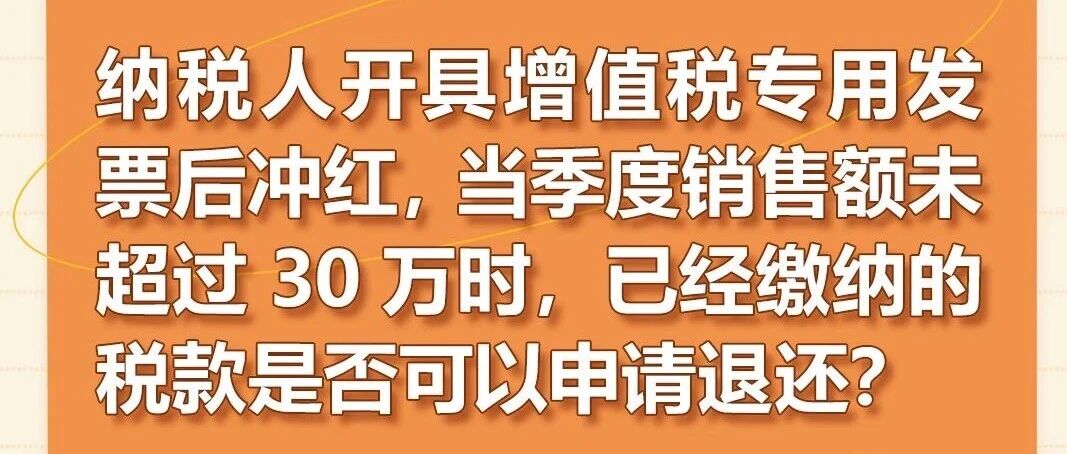纳税人开具增值税专用发票后冲红,当季度销售额未超过30万时,已经缴纳的税款是否可以申请退还?