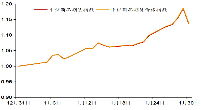 中证商品期货指数1月大幅上涨