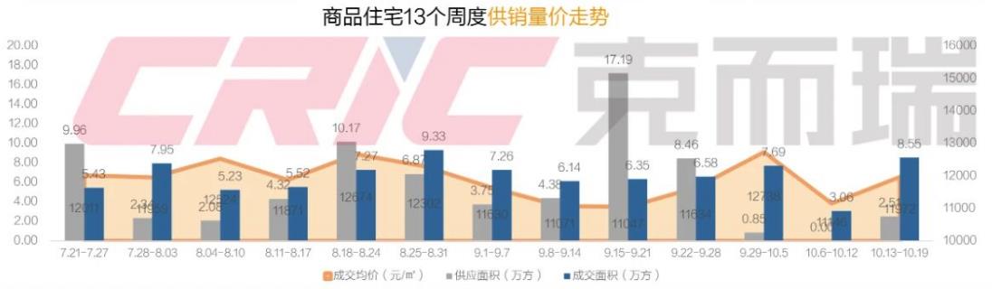 上周(2025年10月13-19日),昆明楼市成交量价齐涨且超国庆节前水平,义承金川府国庆首开数据集中备案,成交均价约13174元/㎡。昆明发布好房子技 术指南,巫家坝首个新建城市公园对外开放,"鄯阐华韵"文旅项目招募民间合伙人;昆明中心城区拟建学校控制性详细规划修改,官渡区官渡古镇片区王家 庄、尚义村城中村改造项目调整为二类城镇住宅用地。 据克而瑞发布的最新数据显示,上周能建未来城、邦泰春华序2个项目向市场新增供应约2.51万㎡;成交8.55万㎡,环比179%;成交均价约11972元/㎡,环 比7%。 (图源:克而瑞) 从"双榜"情况看,新规住宅持续热销。邦泰·观云、邦泰春华序、义承金川翠屿稳居商品住宅销售金额TOP5前三,单周销售金额分别约0.66亿元、0.41亿 元、0.35亿元,成交均价约18721元/㎡、11190元/㎡、13174元/㎡,套均价约288万/套、156万/套、160万/套。 筑友·双河湾、保利城紧随其后,单周销售金额约0.32亿元、0.3亿元,成交均价约11197元/㎡、13312元/㎡。 碧鸡名城、邦泰春华序、筑友·翰林府第则位居商品住宅销售套数TOP5前三,分别成交28套、26套 ...