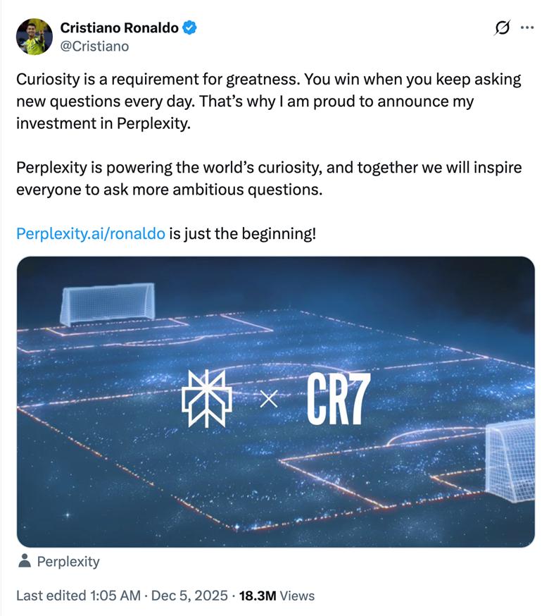 C罗正在为退役攒更多退休金。 C罗的商业版图 职业体育对出身背景几乎没有门槛,却对天赋、健康和竞争结果极度敏感。绝大多数人会在青训阶段被淘汰, 但一旦进入全球顶级序列,回报呈现出高度集中的"头部效应"。 2025年11月,在美国-沙特投资论坛前夕,葡萄牙球星克里斯蒂亚诺·罗纳尔多(Cristiano Ronaldo)作为嘉宾现 身,出席了特朗普宴请沙特王子的晚宴,与多位美国政商界人士及沙特资本代表同场交流。 当一名运动员被请进国家资本与科技资本的核心社交圈,意味着他所积累的,早已不只是奖杯和进球,而是一 种可长期变现的资本信用。 C罗出身贫寒,14岁辍学投身足球。从里斯本竞技到曼联、皇马,再到意甲与沙特的巨额合同,他的薪资一路 攀升,2024年总体年收入高达2.6亿美元(约18.36亿元人民币)。 2025年,他凭借与沙特利雅得胜利队签下的逾4亿美元天价合同,以及历年赞助和商业收益,个人财富首次达 到14亿美元(约100亿人民币),成为足球历史上首位亿万富翁,首次进入"彭博亿万富翁指数"。 除了球场收入,C罗打造的"CR7"个人品牌也为他贡献了相当可观的资产:他先后推出服装、鞋履、内衣和香 水系列,并与多家企 ...