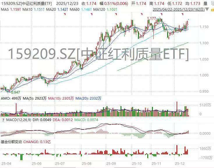 年末密集加仓!中证红利质量ETF(159209)获连续第4日净流入,累计超3000万