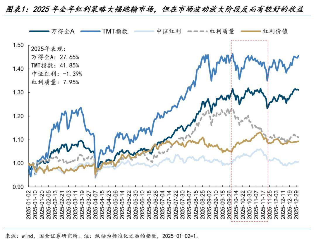 2026年红利策略整体展望 - 2026年红利策略相较于全A市场可能难以获取超额收益 核心原因在于市场驱动力从股息率转向增长率 在AI投资宏观风险较低、降息周期下全球制造业景气度向上的背景下 企业盈利修复成为核心驱动力 投资者将更加关注基本面的边际变化而非股息率 [2][10] - 2025年红利策略大幅跑输市场 相对收益为负 核心原因包括以AI为代表的产业趋势进入高景气区间、制造业“反内卷”对实物消耗型红利造成压力 以及市场风险偏好明显抬升 [6][7] - 红利策略作为投资组合的压舱石依然重要 A股红利资产估值水平最低、波动率相对较低 且股息率相较于主要城市二手住宅租金回报和10年期国债到期收益率仍具备较高性价比 [2] - 当市场出现明显波动或科技成长板块下行时 风格会出现再均衡 红利策略可能阶段性占优 例如2025年10-11月的经验 [2][8] A股与港股红利策略比较 - 2025年港股红利低波指数明显跑赢A股 相对收益高达49.10% [3][22] - 港股红利跑赢的主要贡献来源是工业、金融和能源行业 业绩归因分析显示核心贡献来自个股选择而非行业配置 [3][31] - 港股红利的股息率依旧高于A股 更具性价比 核心在于其分红比例远高于A股 [3][25] - 自2023年以来 A-H红利股的股息率差异不断收敛 未来进一步收敛的空间有限 [3][34] - 展望2026年 港股红利的配置性价比从股息率视角看依旧更好 但二者表现差异可能不会像2025年那样明显 若策略向基本面要弹性 港股股息率优势会削弱 [3][40] - 港股通红利税对机构投资者(如保险)持股满一年几乎无影响 但对个人投资者影响显著(税率为20%) 考虑税后 个人投资者投资港股红利的性价比会明显下降 [3][41] 2026年红利组合构建思路与行业筛选 - 配置思路应从注重历史分红比例和静态股息率 向寻求有基本面弹性或边际改善趋势、未来分红比例可能抬升的方向进行结构切换 [4][43] - 基于年度策略提出的三大核心基本面线索(海外AI投资与制造业复苏带来缺电、新兴市场资源保护主义与降息周期共振、内需破局消费力恢复) 资源和传统制造业红利受益范围最广 [4][43] - 构建了结合胜率(以ROE TTM为核心)与赔率(以股息率为核心)的细分行业评分体系 [4][44] - 根据评分体系划分四个象限:第一象限(赔率胜率俱佳)包括保险、纺织制造、煤炭开采、航运港口、饮料乳品、通信服务、家居用品、食品加工、非白酒、物流等行业 建议加大配置 [4][48] - 第四象限(赔率较好但胜率不足)包括白酒、银行、铁路公路、基础建设、装修建材、厨卫电器等 其中赔率很高的行业可作为中长期配置方向 [4][49] - 基于行业胜率评分和个股筛选标准(连续分红、市值与成交额排名前80%等) 构建了包含55只A+H个股的2026年红利标的组合 [4][51][53] 细分行业表现与基本面驱动分析 - 2025年 高股息行业(股息率大于均值)的涨跌幅与股息率呈明显负相关 而与ROE的环比变化(2025Q3相较于2025Q2)呈明显正相关 印证市场定价转向增长率 [10] - 历史上全A(非金融)ROE回升阶段 红利是否有超额取决于驱动力是否与红利主要行业相关 产业政策驱动的ROE回升(如移动互联网)往往导致红利跑输市场 [11] - 制造业“反内卷”趋势下 传统制造业红利(量价齐升)的业绩弹性可能大于实物消耗型红利(价稳量升) [13] - 从估值看 传统消费类红利的赔率最高 其股息率历史分位数集中在90%及以上 整体分位数也最高 部分行业如白电、白酒的股息率已超过国有大型银行、炼化及贸易 [43]