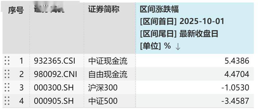 中证全指自由现金流指数发布即将满一周年了。 自2024年12月11日指数正式发布以来,相关ETF产品迅速布局,目前已成为境内ETF市场重要的策略主题之一。 在这个颇有纪念意义的节点已成立的现金流ETF情况如何了? | 证券代码 | 证券间称 | 成立起净值 超越基准收益率 | 基金成立日 | 基金规模合计 | | --- | --- | --- | --- | --- | | | | [单位] % | | [单位] 亿元 | | 562080.SH | 300现金流ETF | 6.86 | 2025-04-07 | 8.11 | | 159232.SZ | 自由现金流ETF南方 | 4.36 | 2025-04-23 | 12.23 | | 159399.SZ | 现金流ETF | 4.21 | 2025-02-19 | 45.69 | | 563390 SH | 现金流ETF全指 | 4.10 | 2025-04-23 | 6.75 | | 159235.SZ | 中证现金流ETF | 3.88 | 2025-04-23 | 17.58 | | 512130.SH | 全指现金流ETF鹏华 | 3.75 | ...