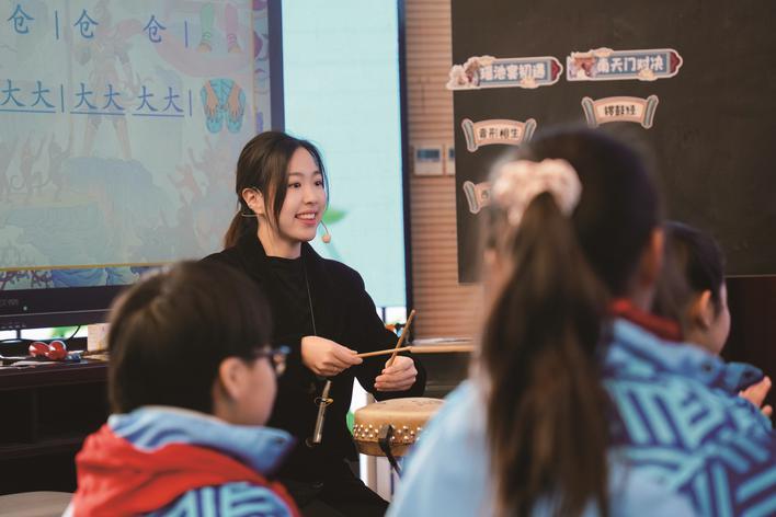(来源:南湖晚报) 转自:南湖晚报 从那以后,我常陪她练声,从音准、气息开始,更讲述每首红歌背后的故事,渐渐地,她的声音变得清 亮,脊背也挺直了。半年后,在区级合唱比赛的舞台上,她站在聚光灯下,领唱《我和我的祖国》。当 清澈坚定的歌声响彻全场时,我看到的不仅是一个女孩从胆怯到绽放的蜕变,更是音乐如何化作涓涓细 流,浇灌出一朵向着阳光生长的花儿。 N嘉兴市省身教育集团 周迪 有人说,音乐是情感的桥梁,教育是成长的灯塔。而在我心里,它们从来不是彼此孤立的岸——音乐是 河,教育是舟,我便是那划桨的人,载着孩子顺流而下。这一路上,水声潺潺,光影摇曳,我总被孩子 们眼中渐次亮起的光轻轻浸润,被那些纯真却坚定的话语深深触动。 唤醒沉默,点亮童年 如果说,舞台用"扮演"让孩子触摸了信仰的轮廓;那么,声音便能用"讲述"带他们听见信仰的回响。 记得刚接手学校合唱团时,有个叫小林的女孩总站在最后一排,低着头,歌声轻如蚊蚋。我注意到她紧 攥的衣角和闪躲的眼神。课后,我悄悄留下她,没有追问原因,只是坐到钢琴前,轻轻弹唱起一首《红 星歌》。"老师,这首歌……我奶奶唱过。"她忽然小声说道,眼里闪过一丝光。我微笑点头:"愿意和 老师一起唱 ...