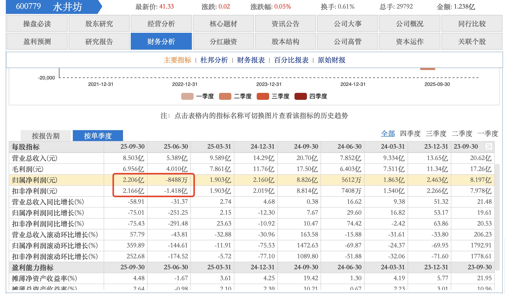 水井坊第三季度主动停货稳定市场 单季净利润环比由亏转盈