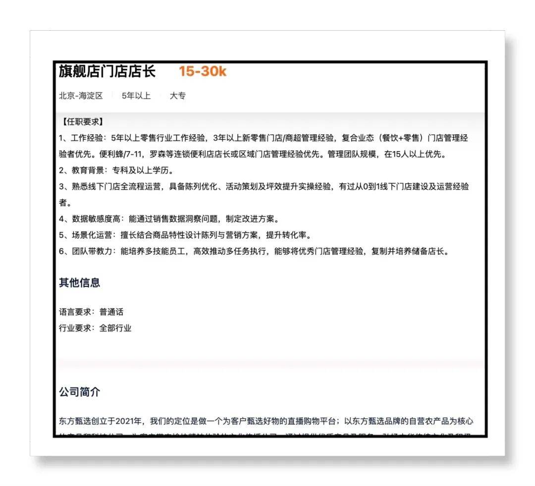 3万月薪急寻店长,东方甄选对标胖东来