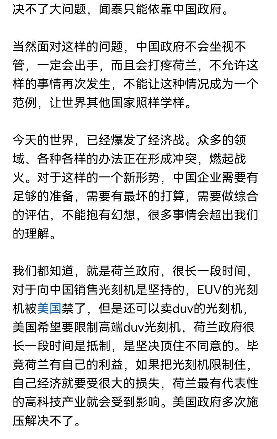 事件概述 - 安世半导体在荷兰的海外资产遭遇荷兰政府以行政命令方式冻结 [1][3] - 事件反映出中国企业海外投资面临的严峻外部风险 [4] 地缘政治背景 - 荷兰政府对华政策出现转变,从曾希望向中国出口光刻机等关键设备,转变为在美国施压后停止出口并冻结资产 [3] - 荷兰政府此次行动背后被认为有美国方面的影子力量在指使 [3][7] - 欧洲的政治判断力越来越受美国情报机构影响,难以基于自身国家利益独立决策 [7] 对企业的风险警示 - 在海外设立或控股子公司的中国企业,若非100%由中国资本控股,风险往往更高 [4] - 国内企业需警惕美国可能突然禁止出售核心技术,应提前准备应对方案 [7] - 国内手机和汽车企业许多关键芯片依赖国外供应,一旦断供将面临重大挑战 [9] 应对策略与启示 - 解决外部风险需依靠国家层面的沟通与协调,普通外交沟通效果有限,可能需要更强硬的方式 [5] - 企业需提高自给自足和自主可控能力,降低对外部供应链的依赖 [9] - 在并购海外公司时应考虑更换原有主管人员,由自家团队接管管理,以提升人事与治理层面的掌控力 [10] 行业影响 - 此次事件表明经济战早已打响,单靠外部依赖难以长期生存 [9] - 事件提醒整个行业必须提升自身安全能力和风险防范意识 [1][9]