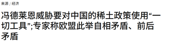 来源:海风看世界 稀土资源是全球高科技产业的关键原材料,被广泛应用于电动汽车、智能手机、风电设备和军事技术等 领域。 长期以来,中国在稀土领域的优势地位使其成为全球供应链的核心。 然而,随着中美贸易战的持续升级,中国开始对稀土出口实施严格管控,以反制美欧对中国科技企业的 打压。 欧盟方面认为,中国的稀土出口限制对其工业发展构成了严重威胁,尤其是在新能源和高科技领域。 作者声明:该文章由AI辅助创作 10月26日,据外媒报道称,中欧贸易摩擦加剧,欧盟委员会主席冯德莱恩在柏林全球对话会上公开表 示,若中国继续限制稀土出口,欧盟将动用一切手段进行应对。 她强调,中国的稀土出口管制已经对欧洲工业造成重大影响,欧盟希望与中国寻求解决方案,但若无法 达成协议,将采取强硬措施。 这番言论迅速成为国际舆论关注的焦点。 然而,这一计划短期内难以奏效,因为建立完整的稀土产业链不仅需要巨额资金投入,还需要技术积累 和时间支持。 为了应对这一挑战,欧盟正联合美国、日本和澳大利亚等盟友,加速建设自己的稀土供应链。 与此同时,光刻机禁售成为另一个潜在的博弈点。 光刻机是制造高端芯片的核心设备,而全球最先进的光刻机几乎全部由荷兰ASML公 ...