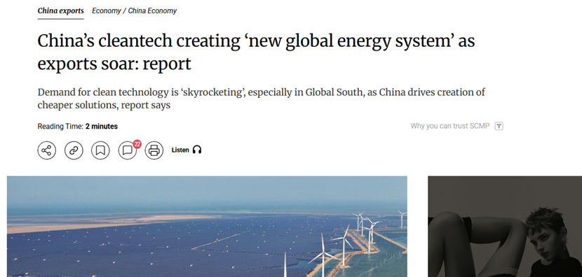 外媒评价:中国清洁能源技术“正成为世界各地新能源系统的基础”