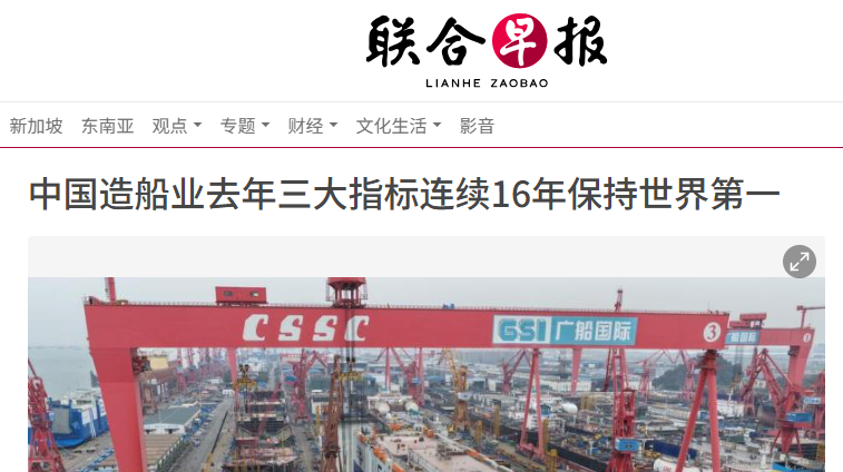 中国造船业三大指标连续16年稳居全球第一