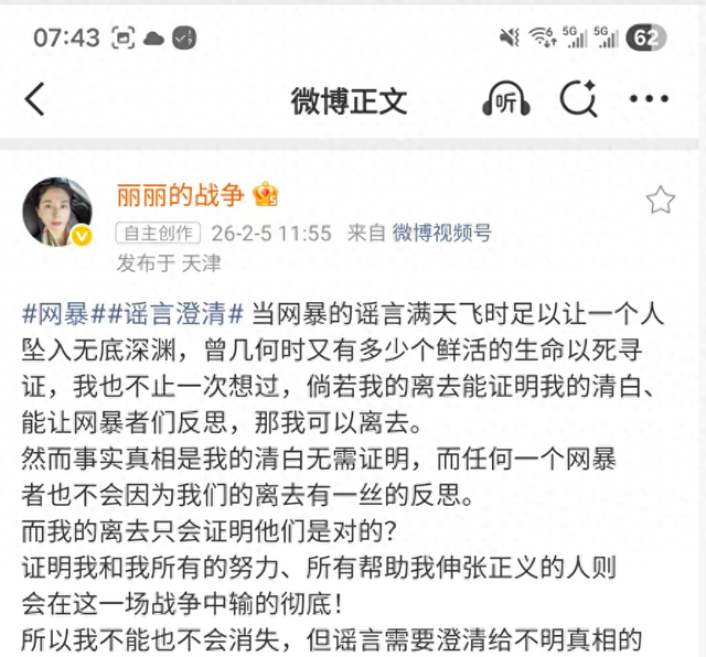 事件概述 - 当事人崔丽丽发布视频澄清围绕其“国内首例职场性侵工伤认定案”的六大网络谣言并宣布将对网暴者发起刑事自诉 [1] 澄清的谣言内容 - 谣言一:被侵害是自己做局,是“仙人跳” [1] - 谣言二:被侵害后,先索要3%的股权,后要2000万,无果后才报案 [1] - 谣言三:被侵害后,在施暴者的房间洗澡 [1] - 谣言四:直播卖货,炒作流量 [2] - 谣言五:勾结西方势力 [3] - 谣言六:骗取社保,薅社保羊毛 [4] 法律行动进展 - 已锁定第一批近50名侵权用户的真实身份信息及侵权证据,包括120篇博文和260个短视频,并已向天津当地法院提起刑事自诉,案件正在进行立案审查 [5] - 第二批还有135名侵权用户的信息调取也在同步进行中 [5] - 2025年12月底在天津本地法院申请立案,目前证据材料诉状已审查完毕并移交给公安(刑侦) [6] - 针对网暴的不同程度,将同时追究行为人的刑事责任和民事责任 [7] 当事人现状与表态 - 当事人每周需见心理医生,并意识到网暴者与性侵者同为施暴者,决心好好活着 [7] - 当事人的经历激励了一些学生立志报考法学专业 [7] - 当事人希望通过行动让公众知晓网络不是法外之地 [7]