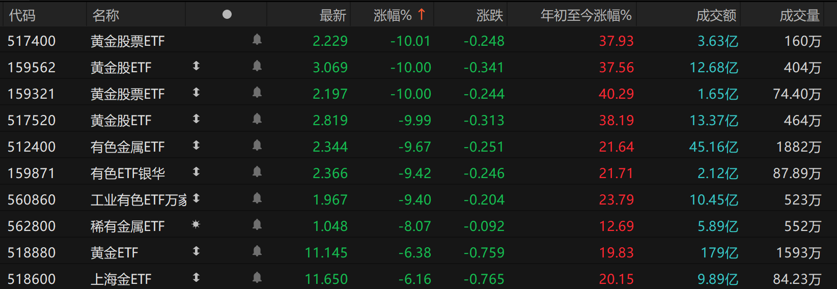 黄金股巨震领跌A股,多支黄金股ETF跌停