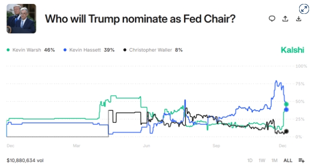 沃什后来居上!预测市场数据显示其获美联储主席提名概率高于哈塞特