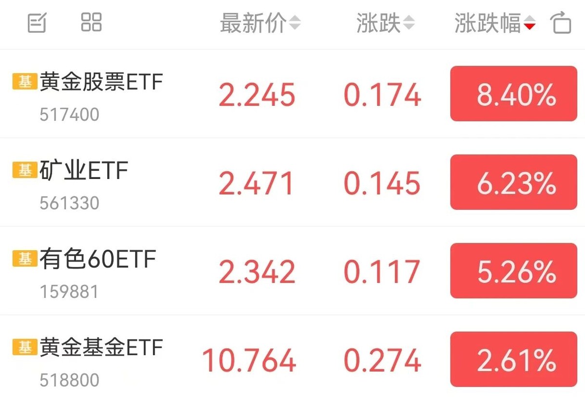 金价持续走强,关注黄金基金ETF(518800)、黄金股票ETF(517400)