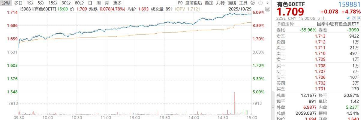 有色60ETF大涨4.78%、矿业ETF大涨4.48%点评