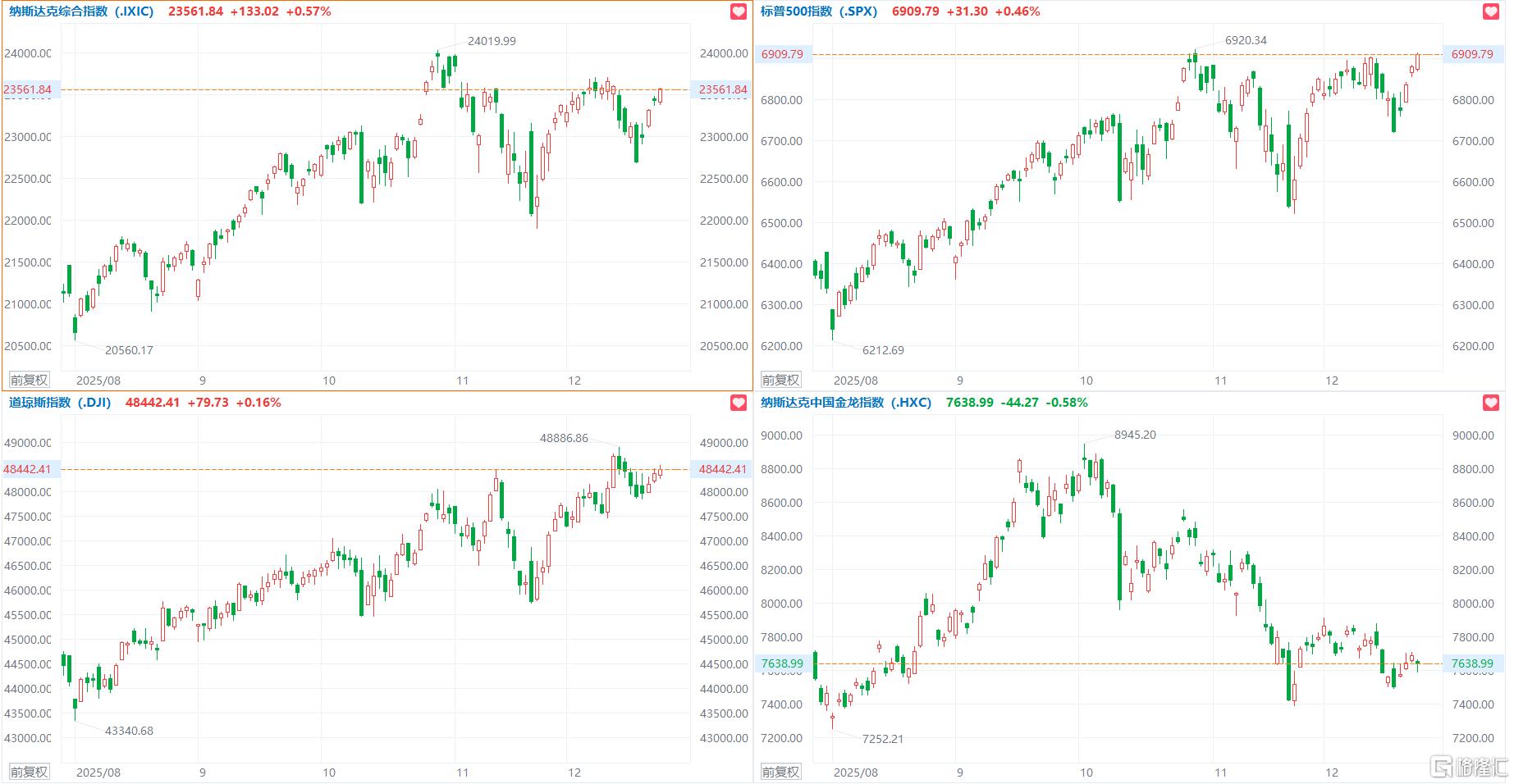 美股四连涨,标普500指数创收盘新高,中概指数跌0.58%