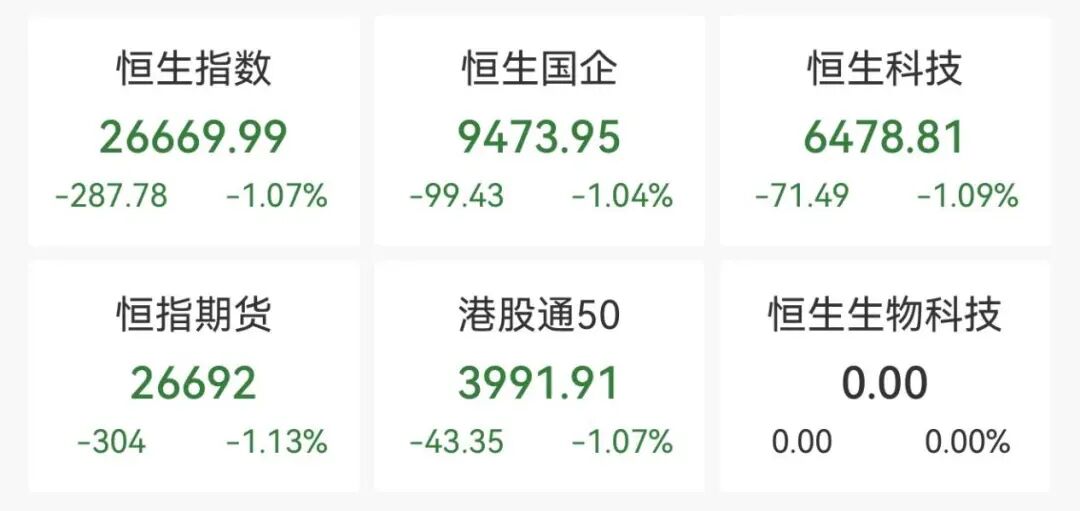 【导读】港股市场震荡调整,三大指数均跌超1% 10月8日,港股三大指数小幅低开,恒生科技指数一度跌超2%,随后跌幅缩窄。截至午间收盘,恒生指数跌1.07%,国企指数跌1.04%,恒生科技指数跌 1.09% | 恒生指数 | 恒生国企 | 恒生科技 | | --- | --- | --- | | 26669.99 | 9473.95 | 6478.81 | | -287.78 -1.07% | -99.43 -1.04% | -71.49 -1.09% | | 恒指期货 | 港股通50 | 恒生生物科技 | | 26692 | 3991.91 | 0.00 | | -304 -1.13% | -43.35 -1.07% | 0.00 0 0.00% | 板块上来看,港股核电板块走强,贵金属概念股集体大涨,锂电池、汽车及其产业链板块表现活跃;半导体、可选消费、房地产等板块震荡调整。 | | | Wind香港概念板块指数 | | | | | Wind香港二级行业指数 | | | | --- | --- | --- | --- | --- | --- | --- | --- | --- | --- | | 互联网信贷 ...